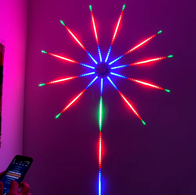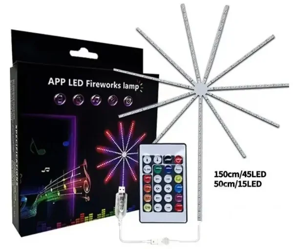 Дуже красивий феєрверк, яскраві кольори, є купа різних режимів. Керування з пульта або програми на телефоні. Програму знайшла, розібралася досить швидко. Рекомендую.